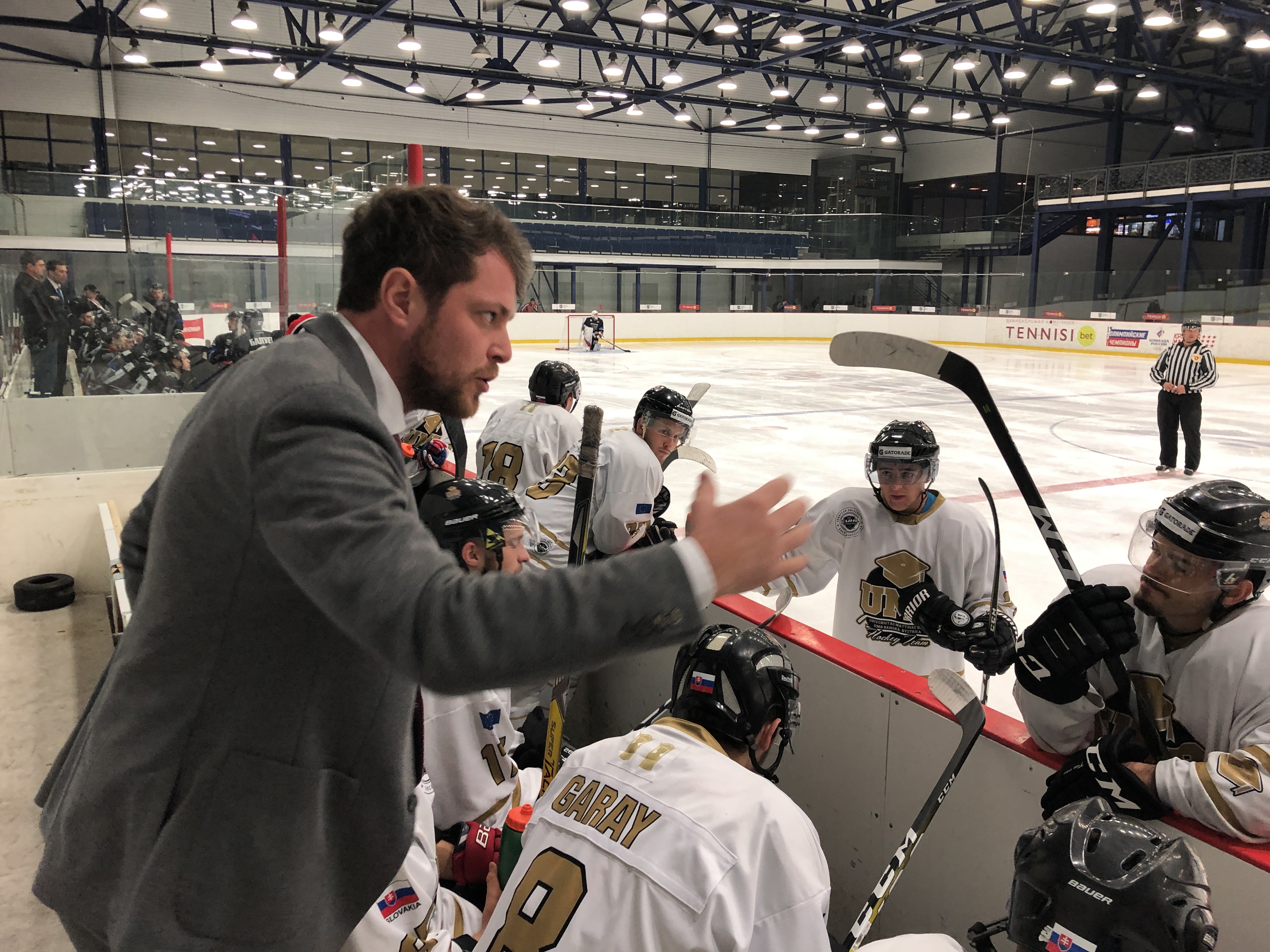 Prvý zápas na 3. ročníku turnaja Student Hockey Challenge nevyšiel úplne podľa našich predstáv. Hneď v úvode proti nám nastúpil jeden z ašpirantov na celkového víťaza turnaja, ruský tím Polytekhnik Chelyabinsk. Väčšinu zápasu sa nám podarilo hrať vyrovnanú partiu. Kritický bol pre nás záver tretej tretiny, kedy sme dostali 2 góly v rýchlom slede a súper otočil skóre z 2:1 na 2:3 vo svoj prospech. V závere sme ešte hrali oslabenie. Ani power play s 5 hráčmi a bez brankára nám nepomohla vyrovnať. Súper skóroval ešte svoj posledný gól. Až naše následné power play prinieslo aj náš posledný gól a tesne v závere tretiny sme znížili na 3:4.